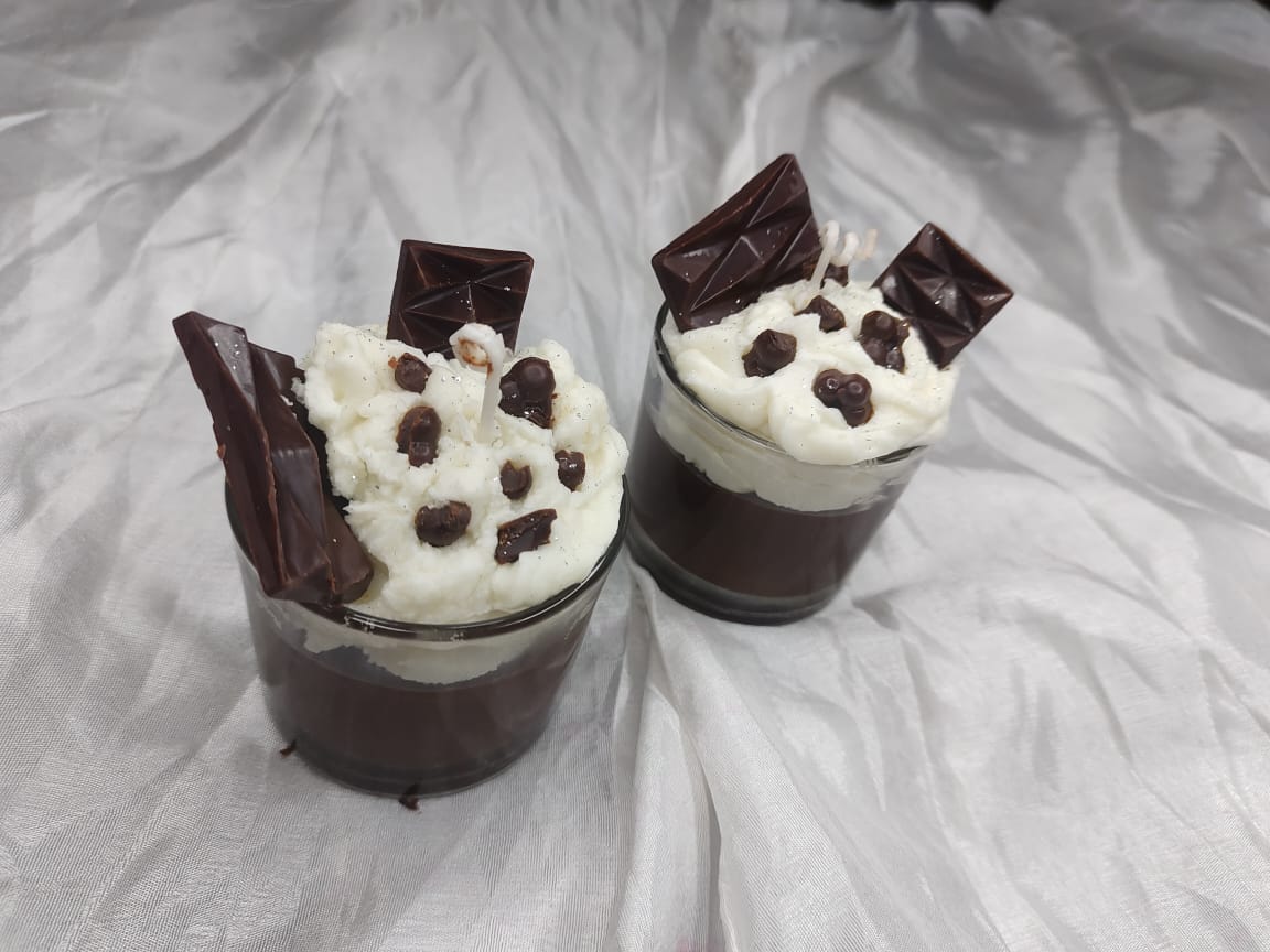 Treat yourself (or a loved one) to the ultimate non-edible indulgence with our Handcrafted Chocolate Dessert Jar Candles. Sold as a set of two, these candles are designed to perfectly mimic a decadent layered chocolate mousse or sundae, presented in a reusable glass tumbler.
