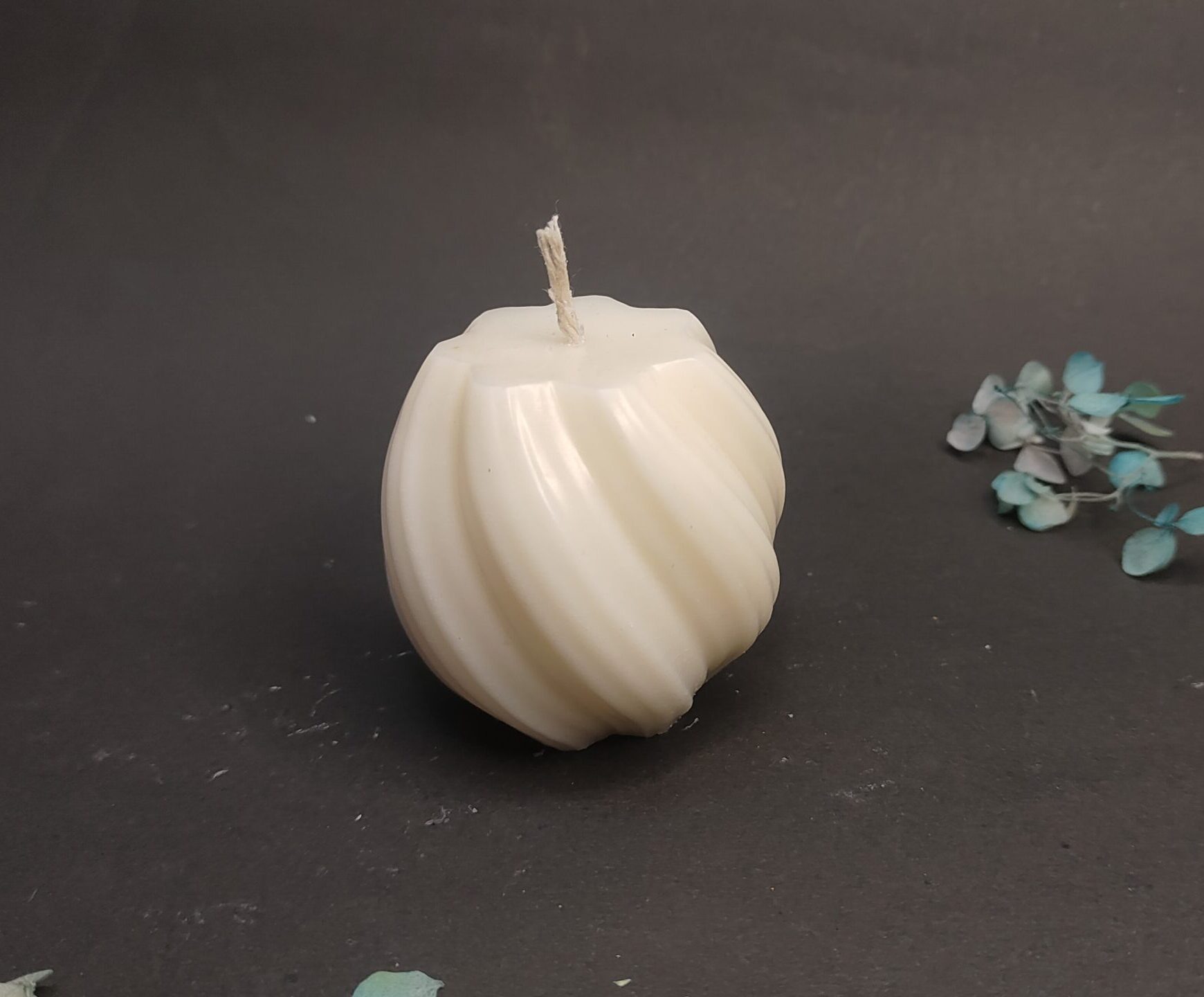 - The Swirl Sphere: A creamy ivory candle featuring a graceful, ribbed texture that catches the light beautifully, offering a contemporary take on a classic pillar shape.